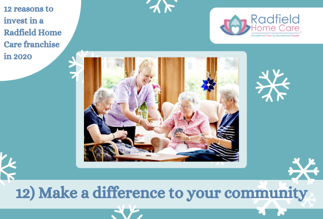 Radfield Home Care franchise partners take pride in being able to give back to their communities, by providing a high-quality care to the eldery, as well as providing careers for people looking to work within the healthcare sector.